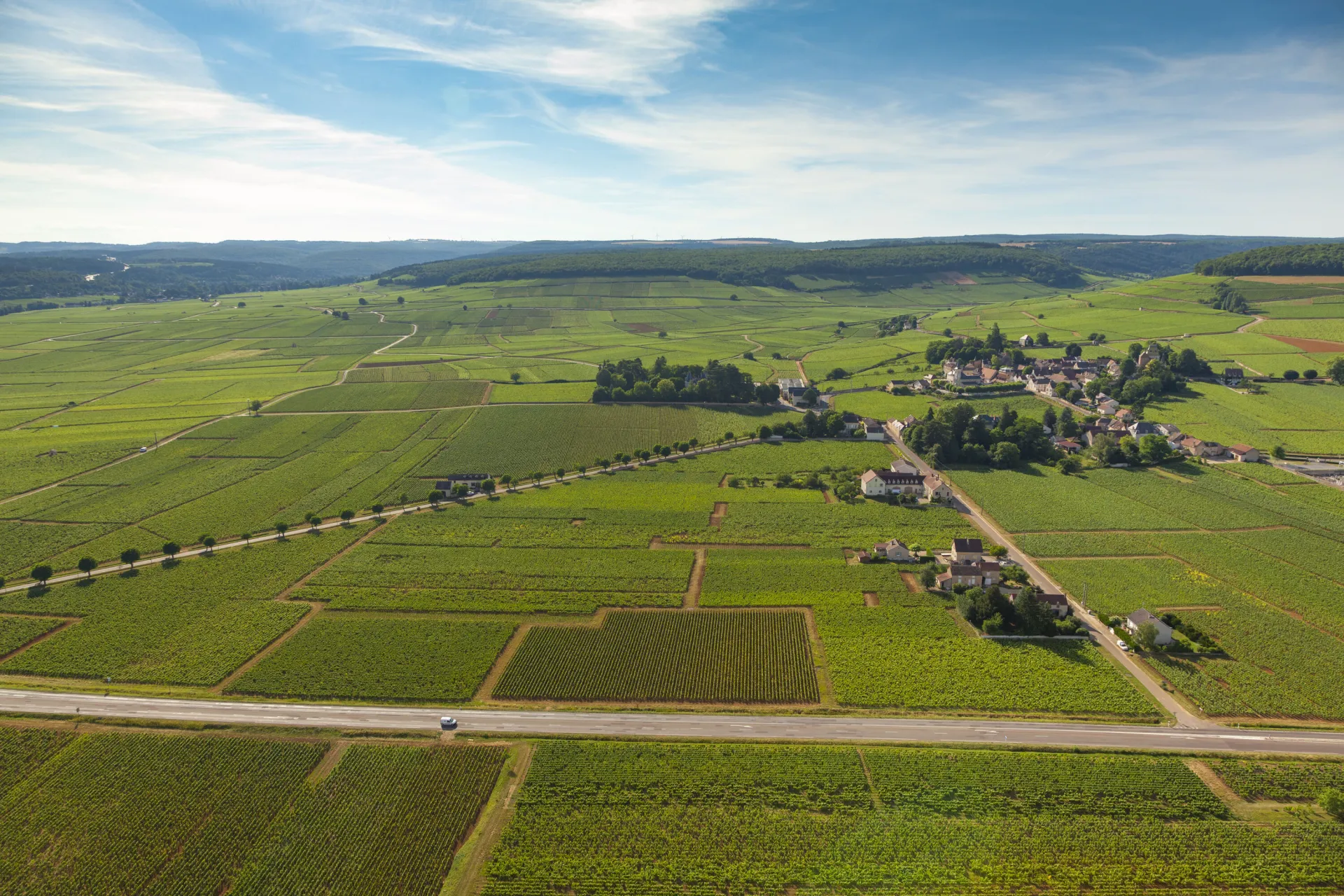 Le vignoble d’Aloxe-Corton se situe dans la partie nord de la Côte de Beaune, entre Ladoix-Serrigny et Savigny-lès-Beaune. Les vignes sont principalement implantées sur les pentes de la colline de Corton, un terroir emblématique de la Bourgogne.